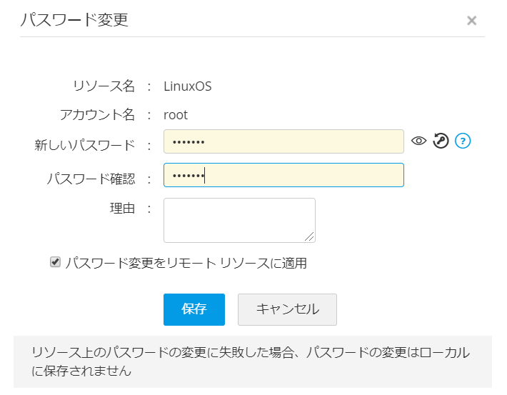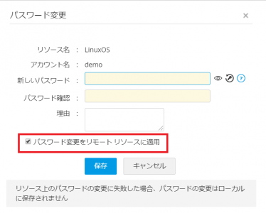 赤枠のチェックボックスを選択し、新しいパスワードを入力し保存