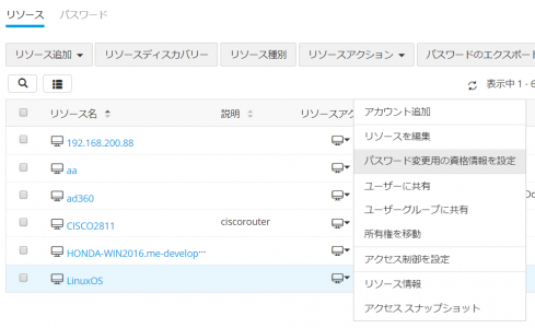 リソースアクションのアイコンを押下して”パスワード変更用の資格情報を設定”を選択
