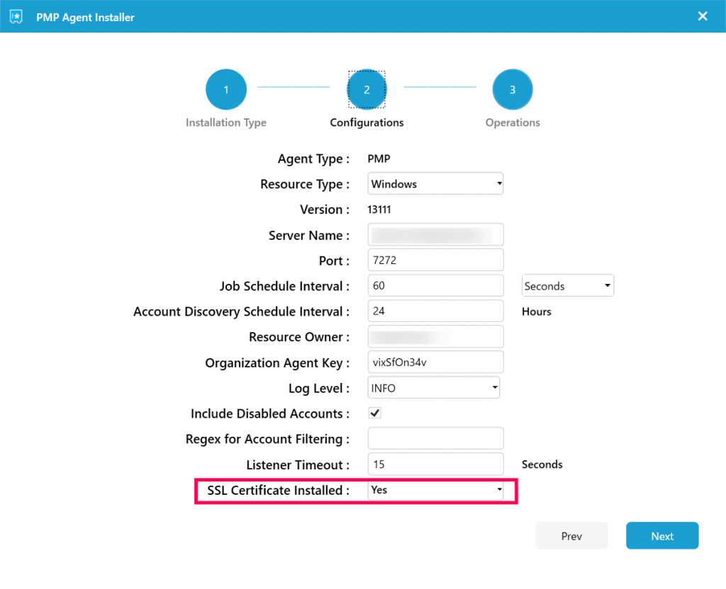 デフォルトでは、[SSL Certificate Installed]フィールドには「Yes」が選択されています。Password Manager Proサーバーに有効なSSL証明書がインストールされていない場合は、このフィールドを「No」に変更します。