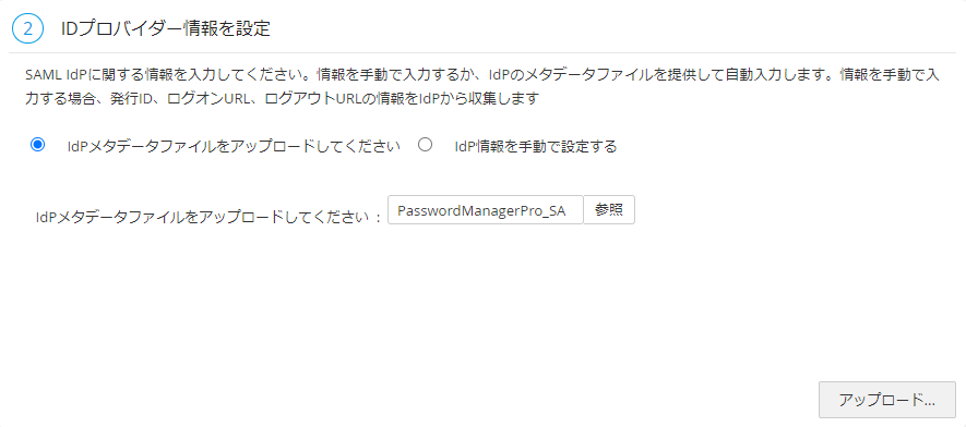 - IdPメタデータファイルのアップロード