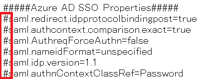 現在の証明書情報が記載されていることを確認した後に、<PMP>\conf\system_properties.confファイルを開き、AzureAD SSOに関するパラメーター全てをコメントアウトを外します。(#を削除して保存する。)