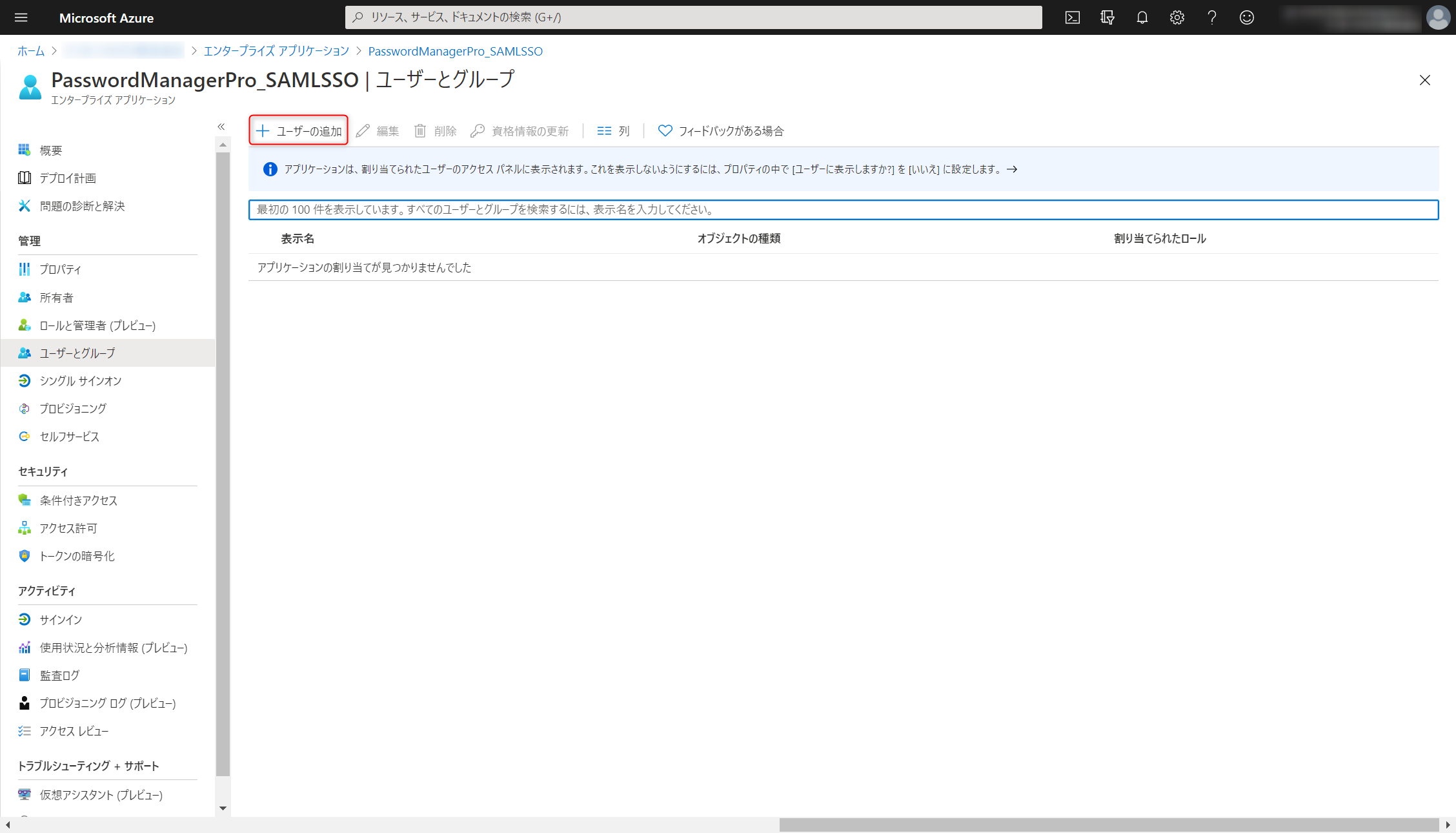 - シングルサインオンを適用するユーザーの追加