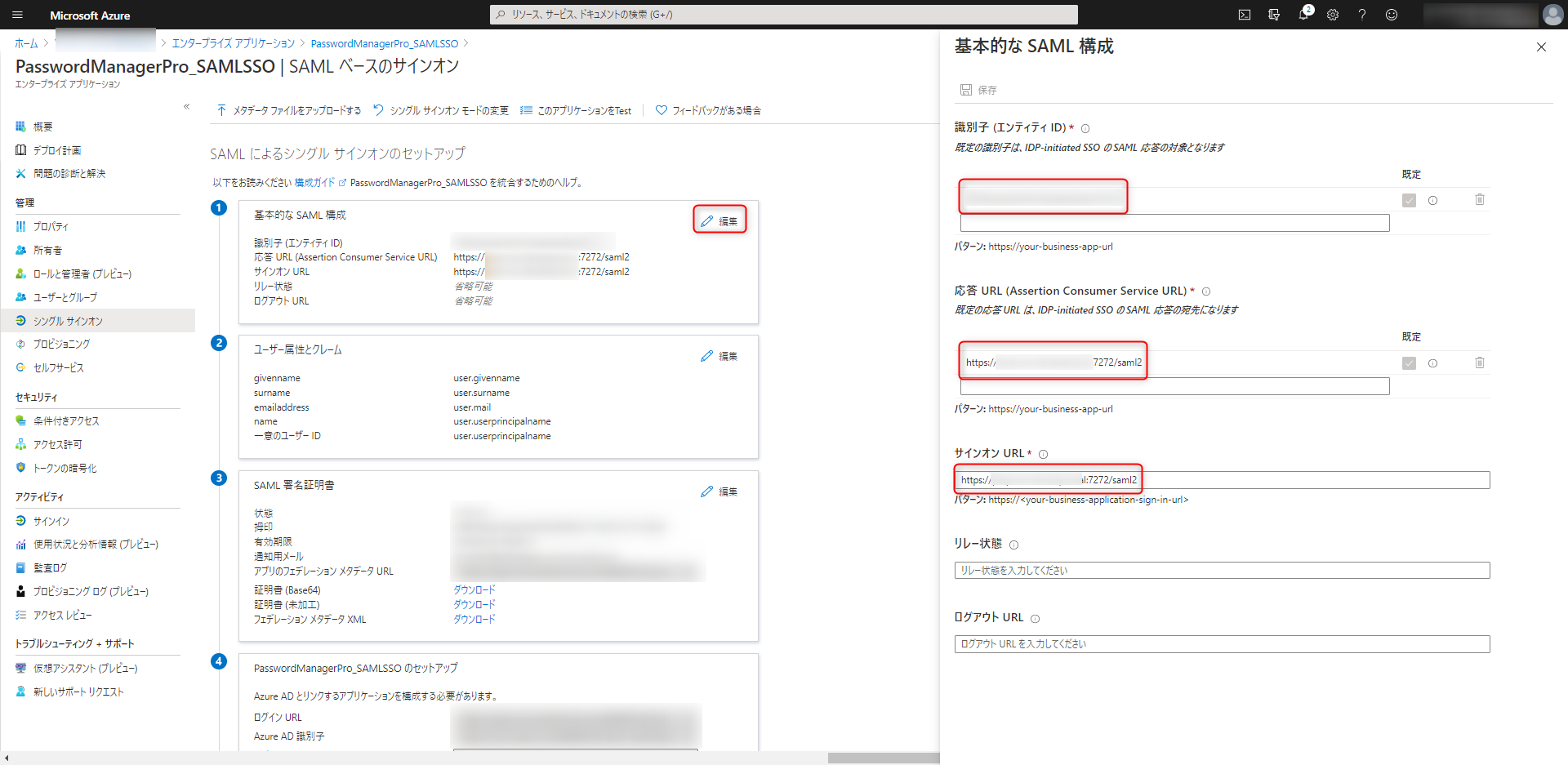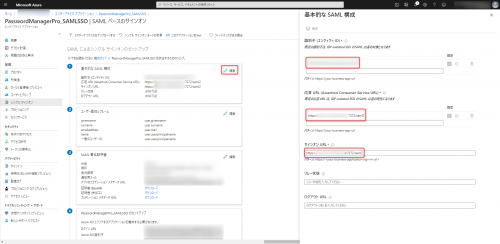 - SSOのセットアップ画面が表示されます。基本的なSAML構成ウィンドウの右上に表示されている「編集」アイコンをクリックします。