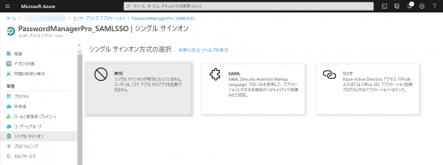 作成したアプリケーションから「シングルサインオン」タブを選択し、「SAML」をクリックします。