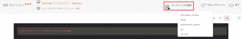 - SQLセッション用のタブが新たに生成されます。「データベースを選択」から接続先のデータベースを選択できることを確認してください。
