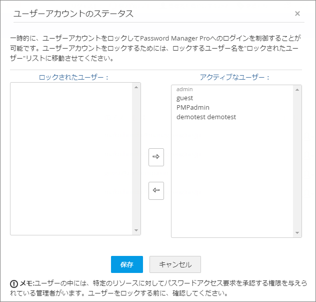 Password Manager Pro へのログインユーザーを無効化したり、有効化したりすることは可能か。