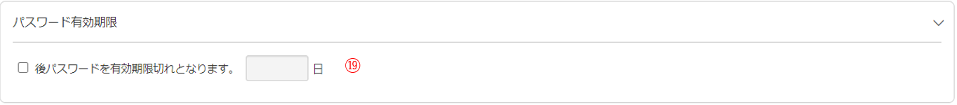| 19 | 後パスワードを有効期限切れとなります。 | パスワードの有効期限を設定します |