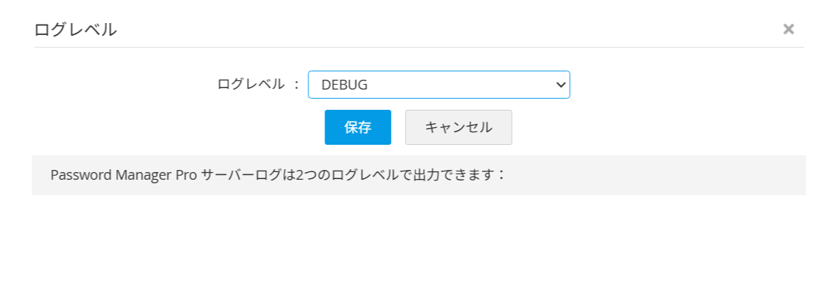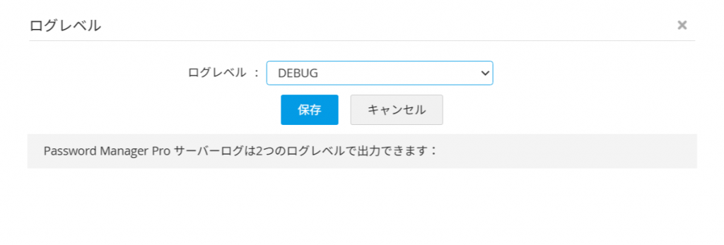 [ログレベル]を[DEBUG]レベル(詳細)に変更する場合