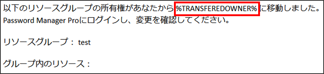 java.MailTemplateConstants.The_following_resource_group_owned=\u4EE5\u4E0B\u306E\u30EA\u30BD\u30FC\u30B9\u30B0\u30EB\u30FC\u30D7\u306E\u6240\u6709\u6A29\u304C\u3042\u306A\u305F\u304B\u3089 %TRANSFERREDOWNER% \u306B\u79FB\u52D5\u3057\u307E\u3057\u305F\u3002Password Manager Pro\u306B\u30ED\u30B0\u30A4\u30F3\u3057\u3001\u5909\u66F4\u3092\u78BA\u8A8D\u3057\u3066\u304F\u3060\u3055\u3044\u3002<BR><BR>\u30EA\u30BD\u30FC\u30B9\u30B0\u30EB\u30FC\u30D7\uFF1A %GROUPNAME%<BR><BR>\u30B0\u30EB\u30FC\u30D7\u5185\u306E\u30EA\u30BD\u30FC\u30B9\uFF1A %RESOURCENAME%