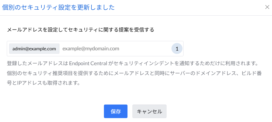 ご利用中の環境に応じたセキュリティ上の推奨事項をメールで提案する目的に使用されます。