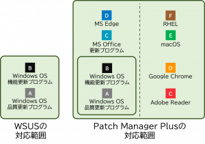 WSUSとPatch Manager Plusの機能上の差異は何でしょうか?