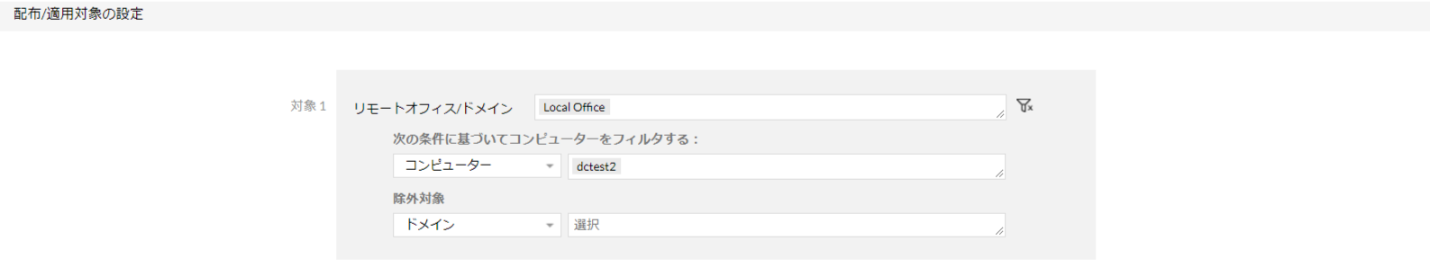 メッセージ:メッセージ本文を入力する - 配布/適用対象の設定にて、操作を実施するコンピューターを指定する