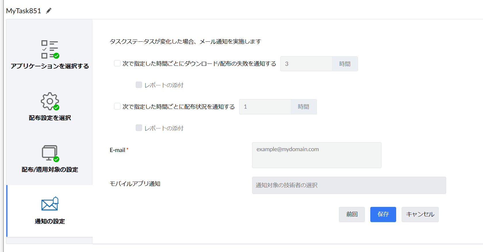 - 「配布設定を選択」の各項目を設定します。