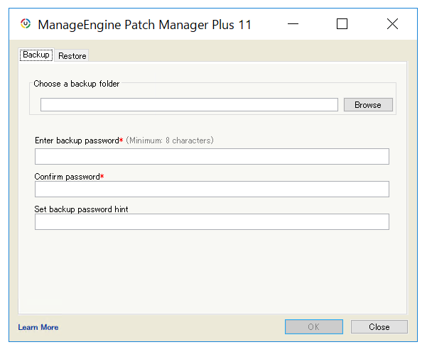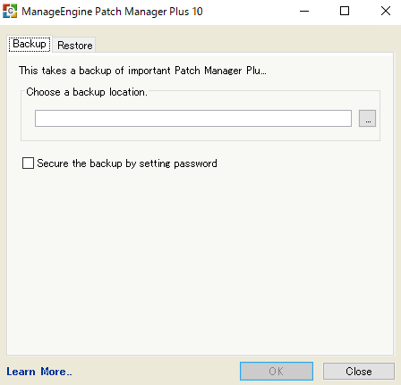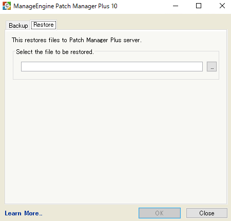 (以前のビルドのバックアップを適用するには、過去のビルドでのバックアップファイルを保存したうえで、そのバックアップを取得した際と同じビルドのPatch Manager Plusサーバーを再インストールし、リストアを適用します)