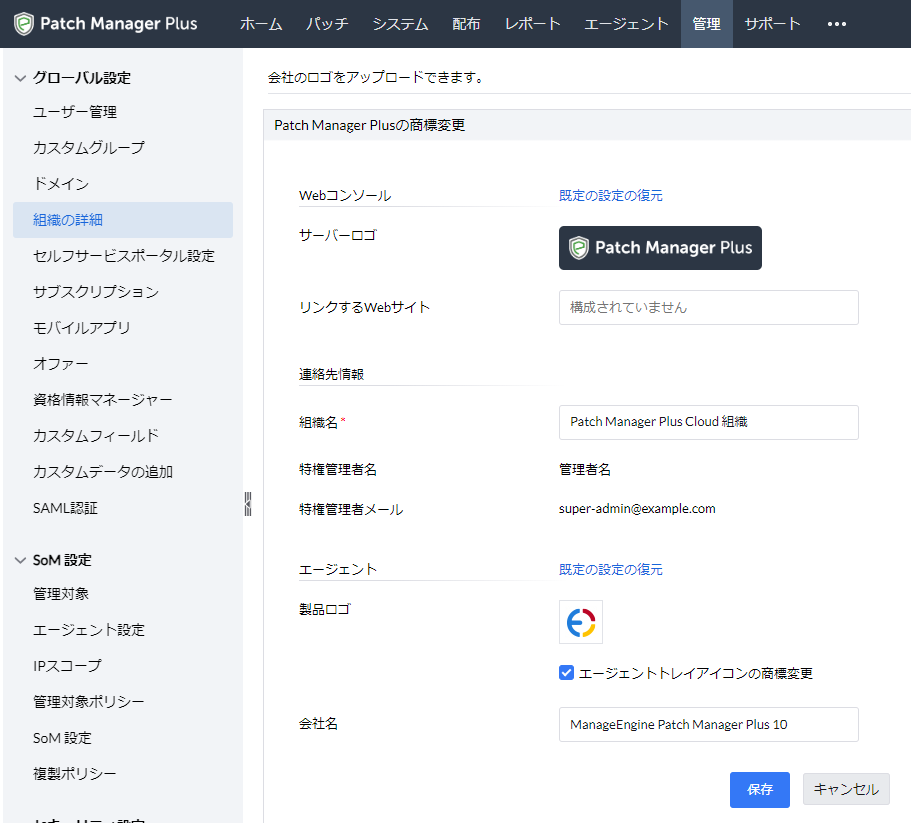 この記事では、Patch Manager Plus Cloudサービスについて、「スーパー管理者」として登録されているアカウントの確認方法について説明しています。