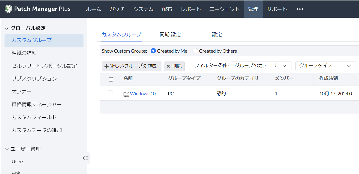 カスタムグループは、管理対象のコンピューターをひとまとまりにして扱うためのグループです。パッチ配布やパッチの拒否、パッチテストを実施する場合のテストグループとして対象を指定する際などに使用します。