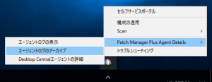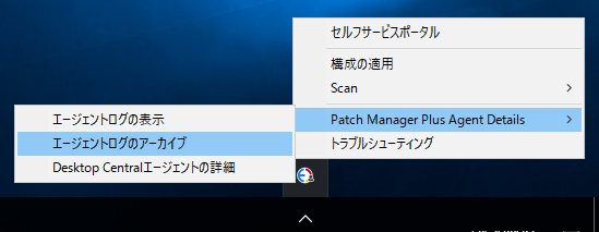 - トレイアイコンを右クリック →「UEMS Agent Details」→「エージェントログのアーカイブ」を選択します。