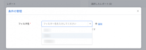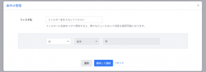 - 上記で列や基準や値の指定を行った付近にマウスオーバーすると、「-」「+」のボタンが一番右側に表示されています。「+」をクリックすることで基準を追加します。