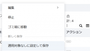 - 次回以降同様の設定を配布する場合は、「配布」タブ →「配布」→「手動配布」を開き、今回作成した構成の「アクション」列 の三点リーダー →「適用対象なしに設定して保存」をクリックすることで、適用対象コンピューター以外の項目をコピーして作成できます。