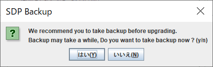 [はい]をクリックすると、バックアップファイルが自動で取得され、その後アップグレードが継続します。