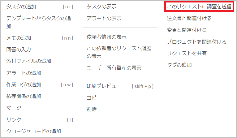 手動でリクエストのユーザー満足度調査を送信する方法 作成日:2014年1月24日 | 更新日:2021年10月18日 設定と操作 質問 手動でリクエストのユーザー満足度調査を送信する方法を教えてください。 回答 手順は以下の通りです。 クローズしたリクエストの詳細画面を開きます。 [アクション]→[このリクエストに調査を送信]をクリックします。 確認ビルド:11210 このナレッジの総閲覧回数: 1,155 関連ナレッジ リクエストをクローズする際に表示されるポップアップを非表示にする方法 リクエストのエクスポート方法 保留中のチケットを自動的に再オープンにする方法 ログイン画面に表示される「ログオン先」から特定のドメインだけを表示する方法
