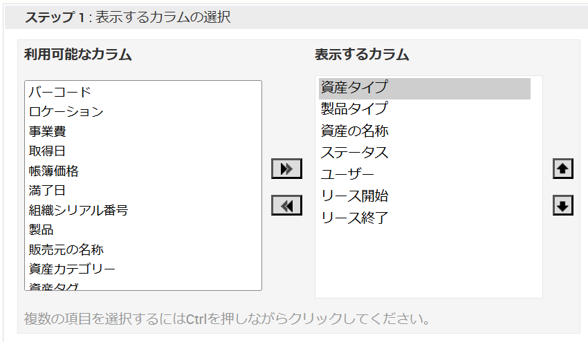 - 「ステップ1:表示するカラムの選択」で必要なカラムを選択します。