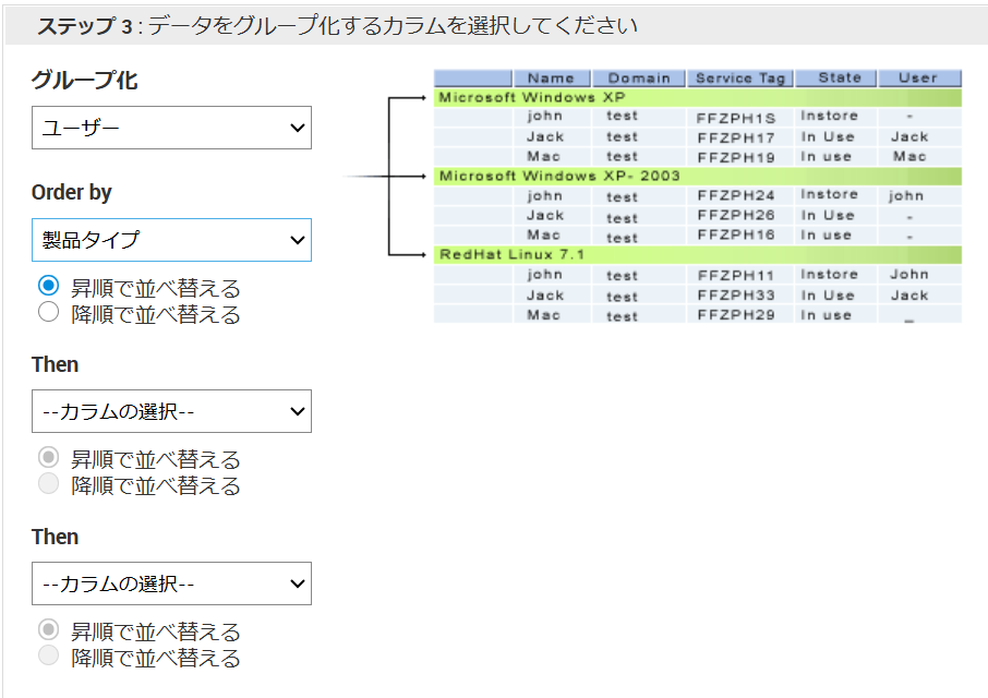- 必要に応じて「ステップ3:データをグループ化するカラムを選択してください」でグループ化するカラムなどを設定します。