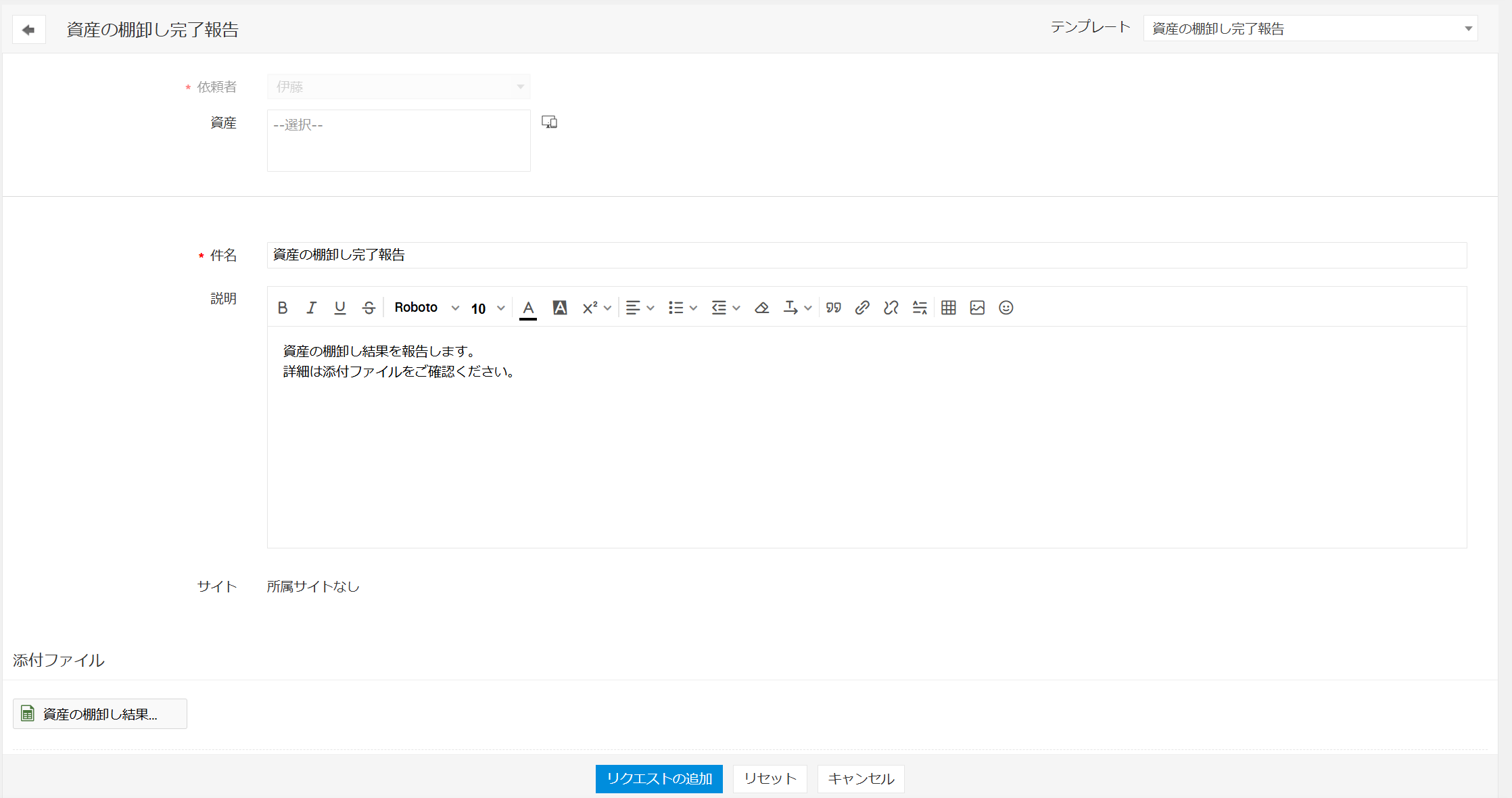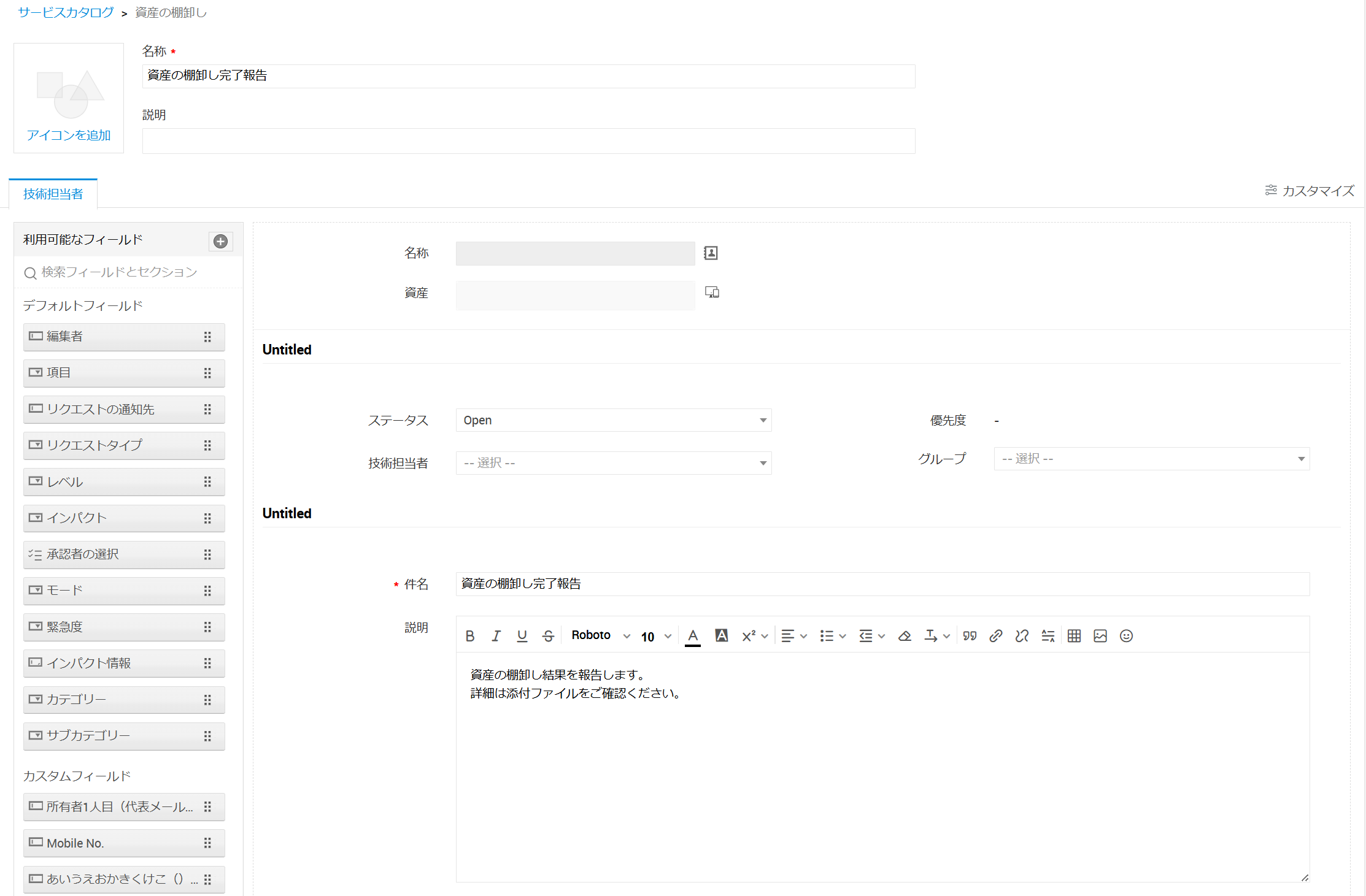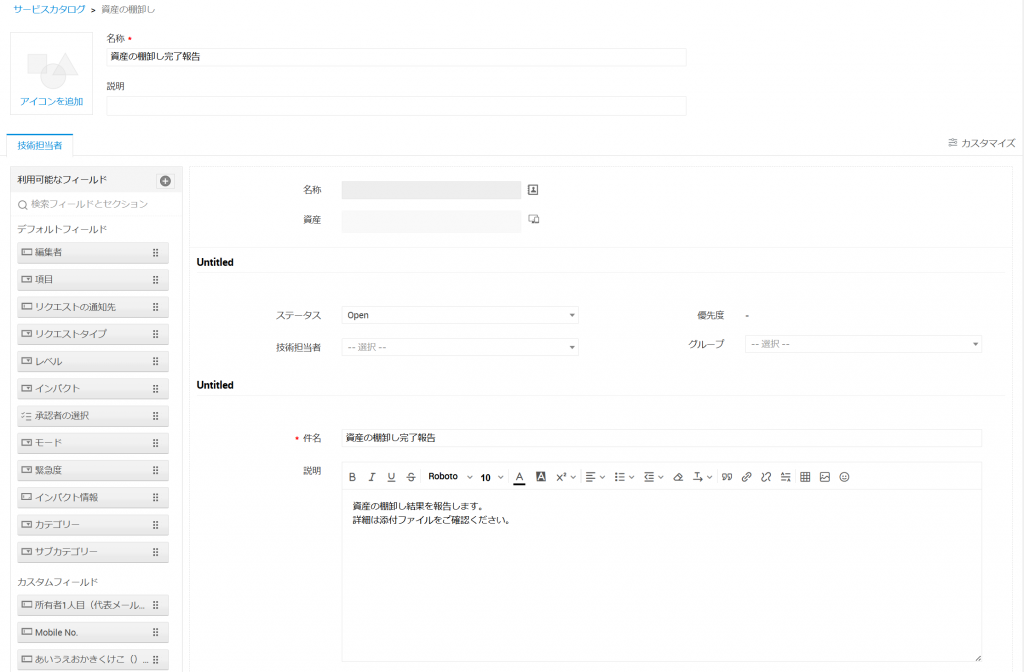 資産の棚卸し完了用サービス要求テンプレートの作成