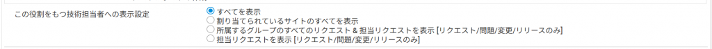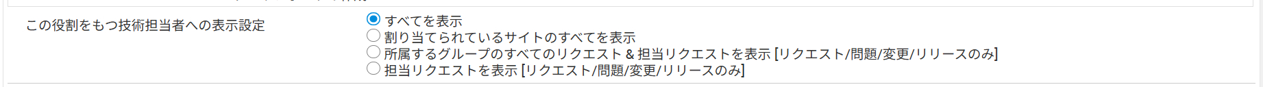 - 「詳細設定」セクション配下に表示される「この役割をもつ技術担当者への表示設定」で、以下4つのうちいずれかを選択します。