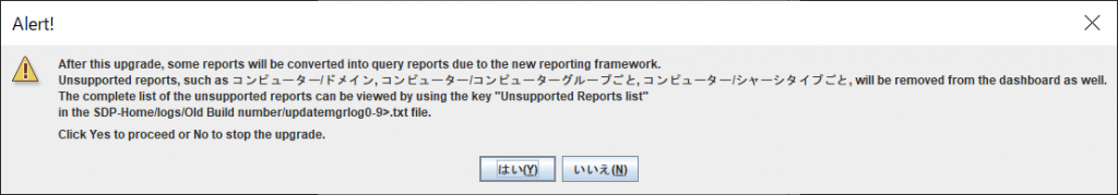 「はい」を選択すると、アップグレード処理が続行します。