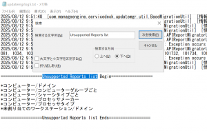 - 各「updatemgrlog*.txt」(*は0~9の数字)ファイルを開き、「Unsupported Reports list」を検索します。
