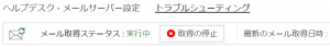 1. 「管理」タブ -> 「メールサーバ設定」 -> 「受信」タブ -> 「メール取得ステータス」が「実行中」と