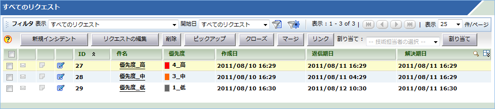 図3.各SLAが適用されたリクエストのリストビュー