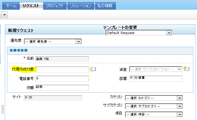 ServiceDesk Plus 8.2 8213 ビルドより、依頼者がリクエストを代理作成した場合に、