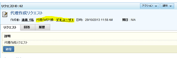 3. リクエストの詳細ページ上に「代理作成対象」が表示されます