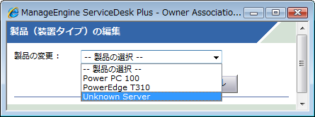 該当するサーバーの装置タイプがない場合は、[管理]タブ > [資産管理] > [製品]に移動して、