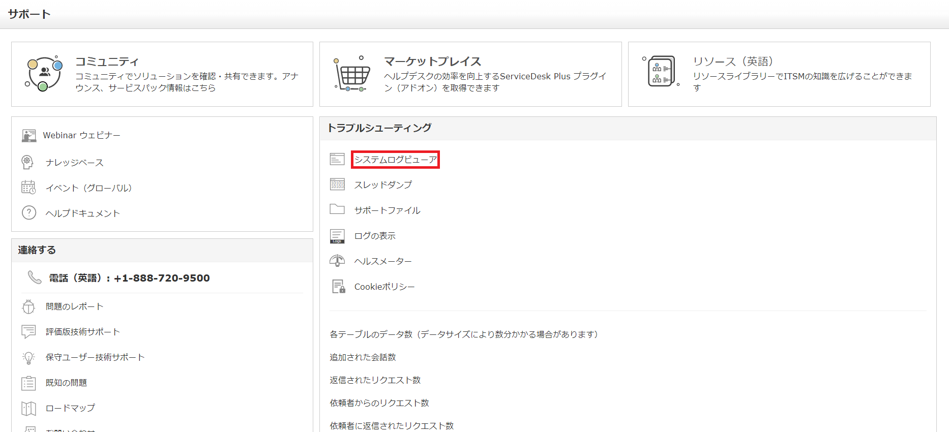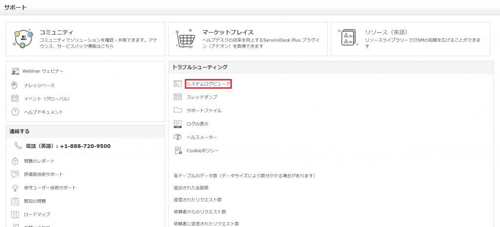 - 「システムログビューア」をクリックする