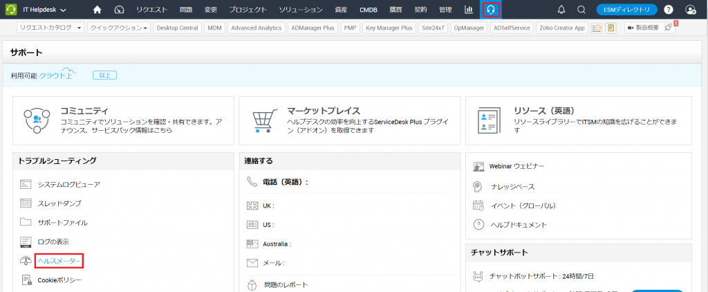 ServiceDesk PlusのUIから確認する方法とインストールディレクトリから確認する方法の2つがあります。