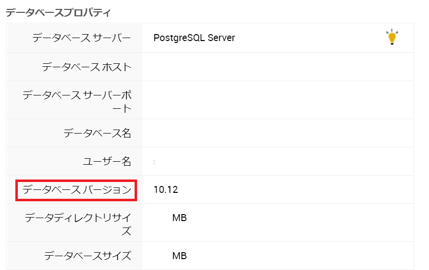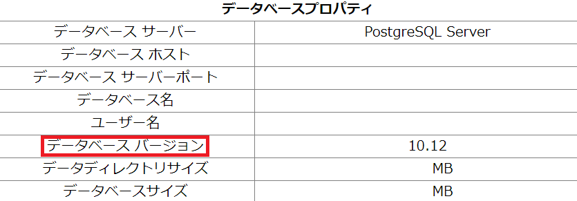 - [データベースプロパティ]の[データベースバージョン]を確認します。