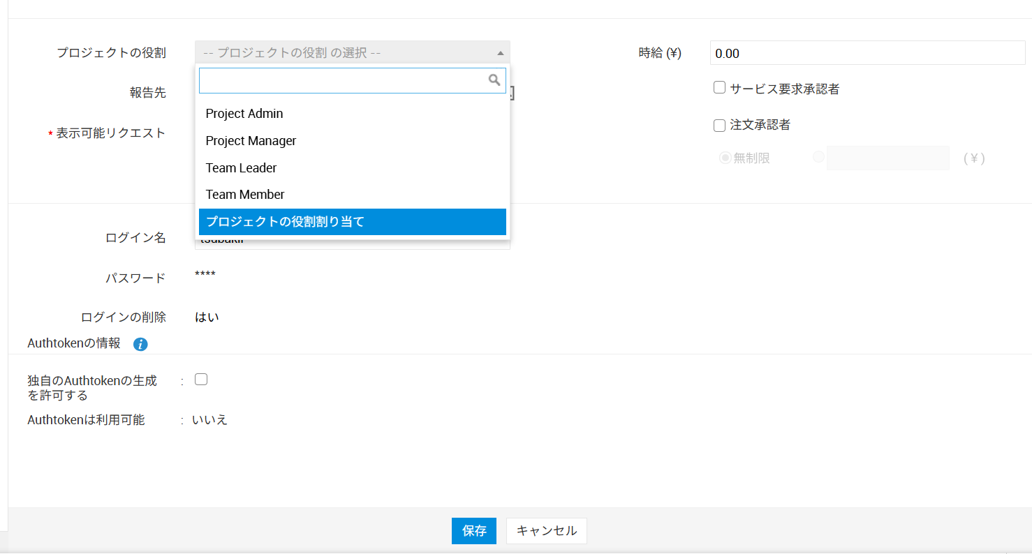 をクリック - 「プロジェクトの役割」のドロップダウンリストから、割り当てたい役割を選択し、[保存]をクリック