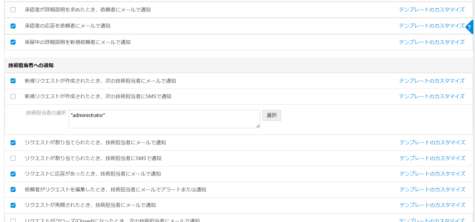 サービス要求が作成されたときに任意の技術担当者にメール通知を送信する方法は以下のとおりです。