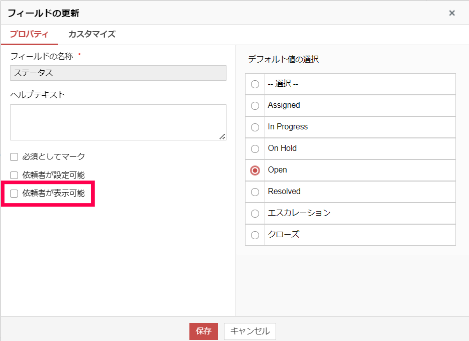 - [プロパティ」タブの、「依頼者が表示可能」のオプションが無効化されている(チェックが入っていない)かどうか確認します。