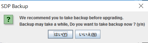 [はい]をクリックすることでバックアップファイルが自動で取得されます。