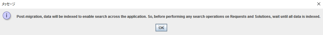 こちらのアラートは、ServiceDesk Plusでの「全体検索」機能を有効化するため、