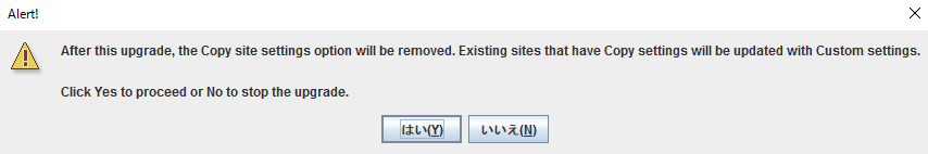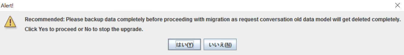 以下の概要を確認後、アップグレードを続行する場合は、「はい」および「OK」をクリックしてください。