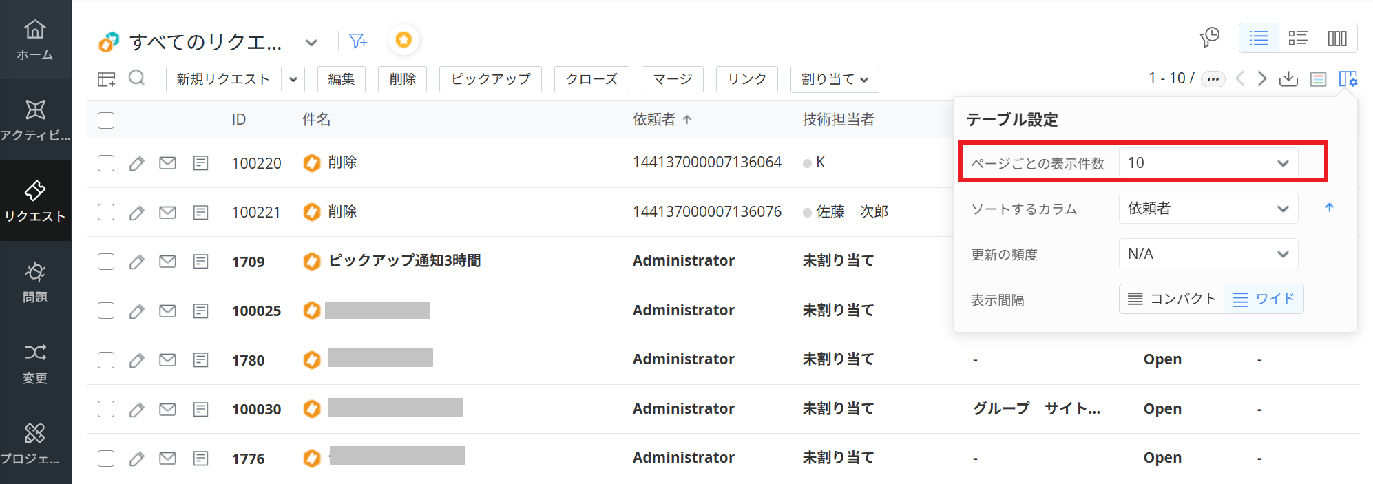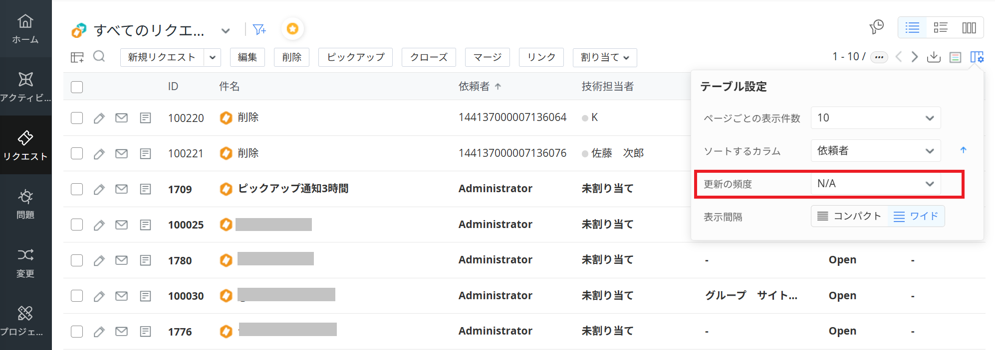 2. 画面左上より確認できますリクエストのフィルター表示でグループ表示選択の利用を控えてください。